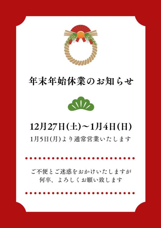 年末年始休暇のお知らせ